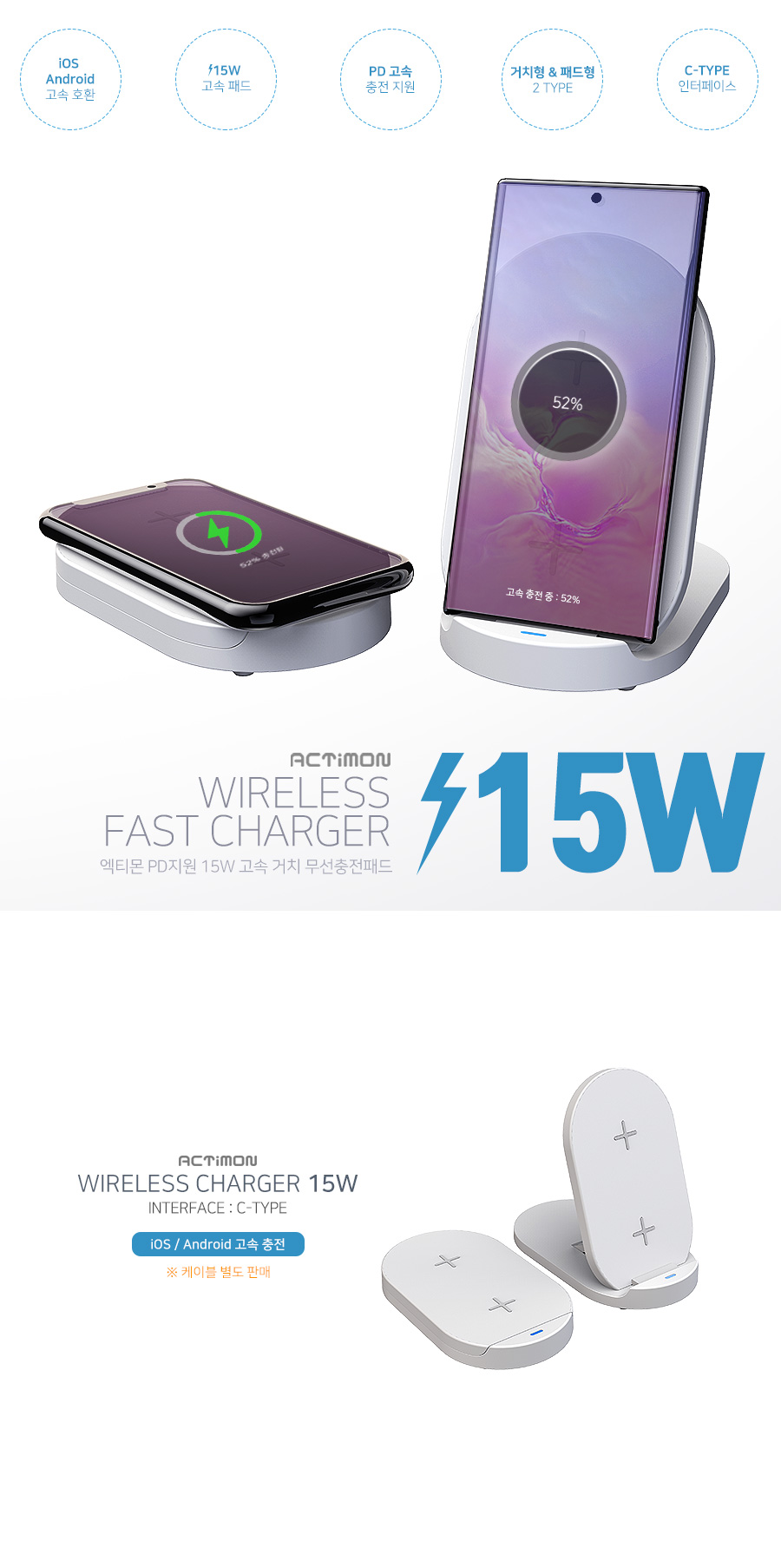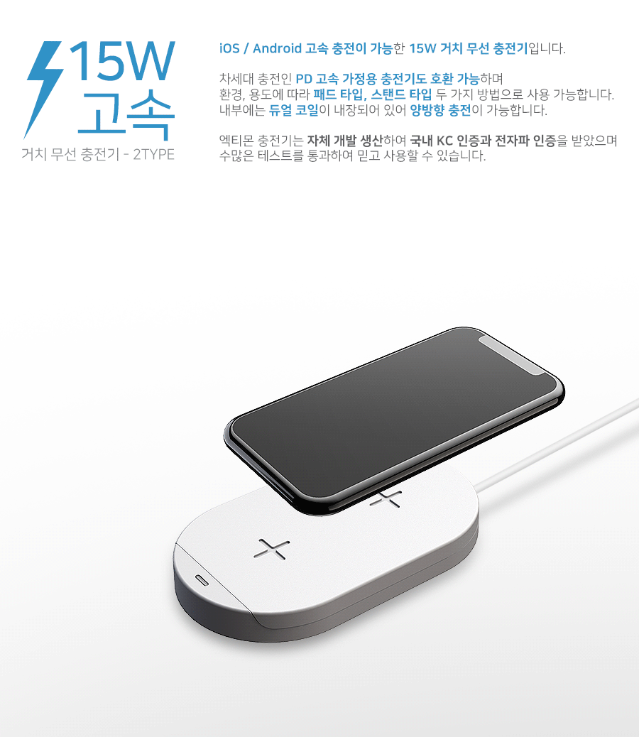 ※ PD 고속 가정용 충전기 호환 / 입력포트 C타입 / 듀얼코일 / 패드&스탠드 타입