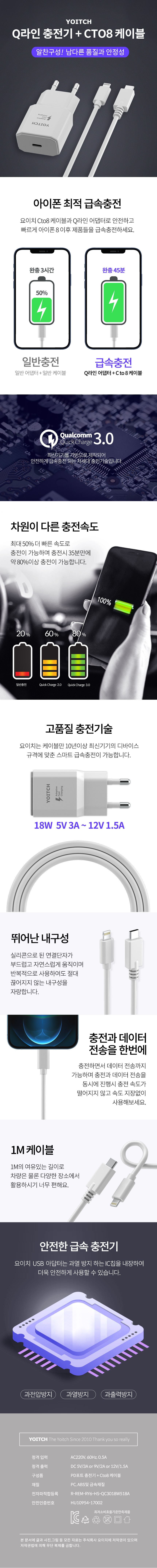 요이치 Q라인 PD 고속 18W Cto8 USB 1포트 가정용 충전기