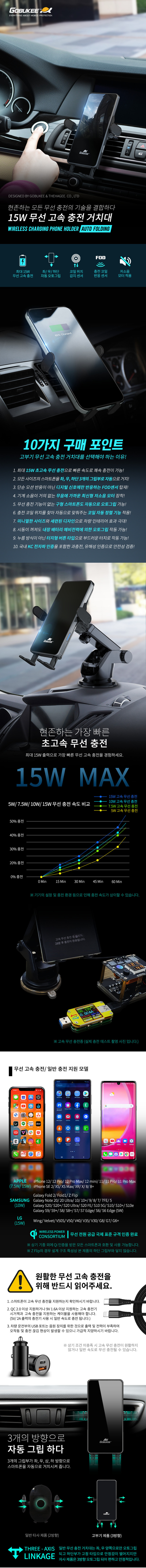 고부기 4.5세대 15W 차량용 고속 무선 오토그립 충전 거치대
