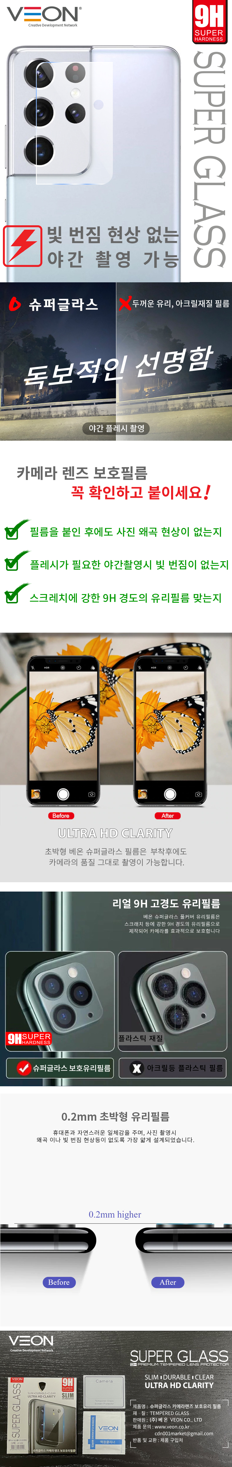 베온 슈퍼글라스 카메라 렌즈 풀커버 강화유리 보호필름 (1매) ★