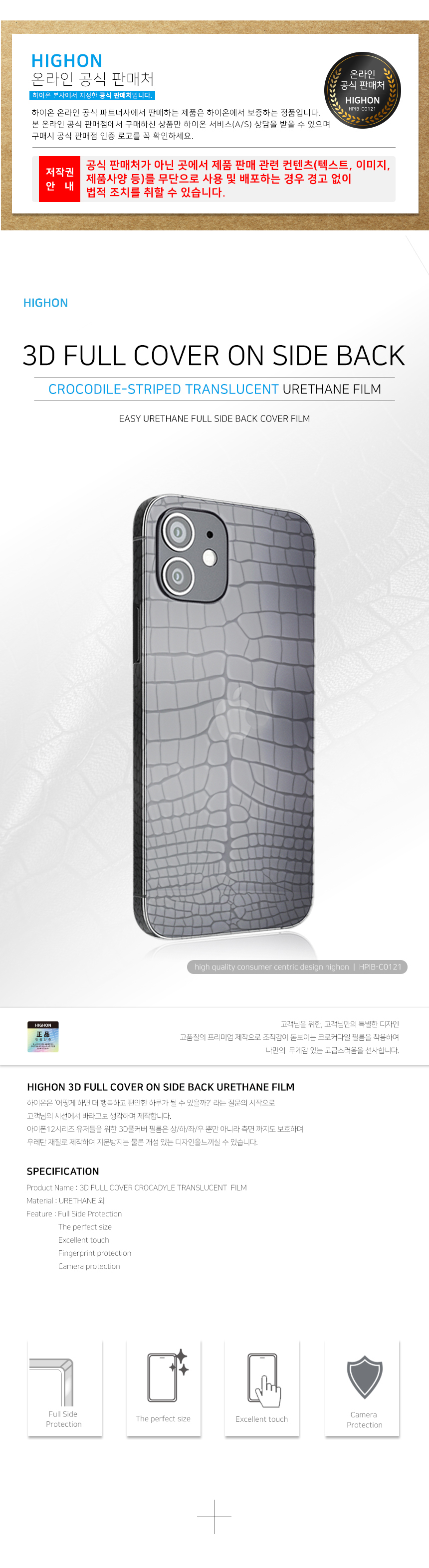 하이온 크로커다일 테두리 후면필름 (2매)