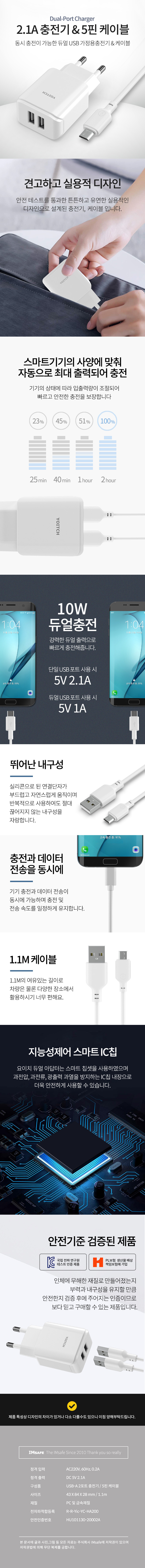 아임세이프 5핀 USB 2포트 분리형 가정용 충전기 (2.1A)