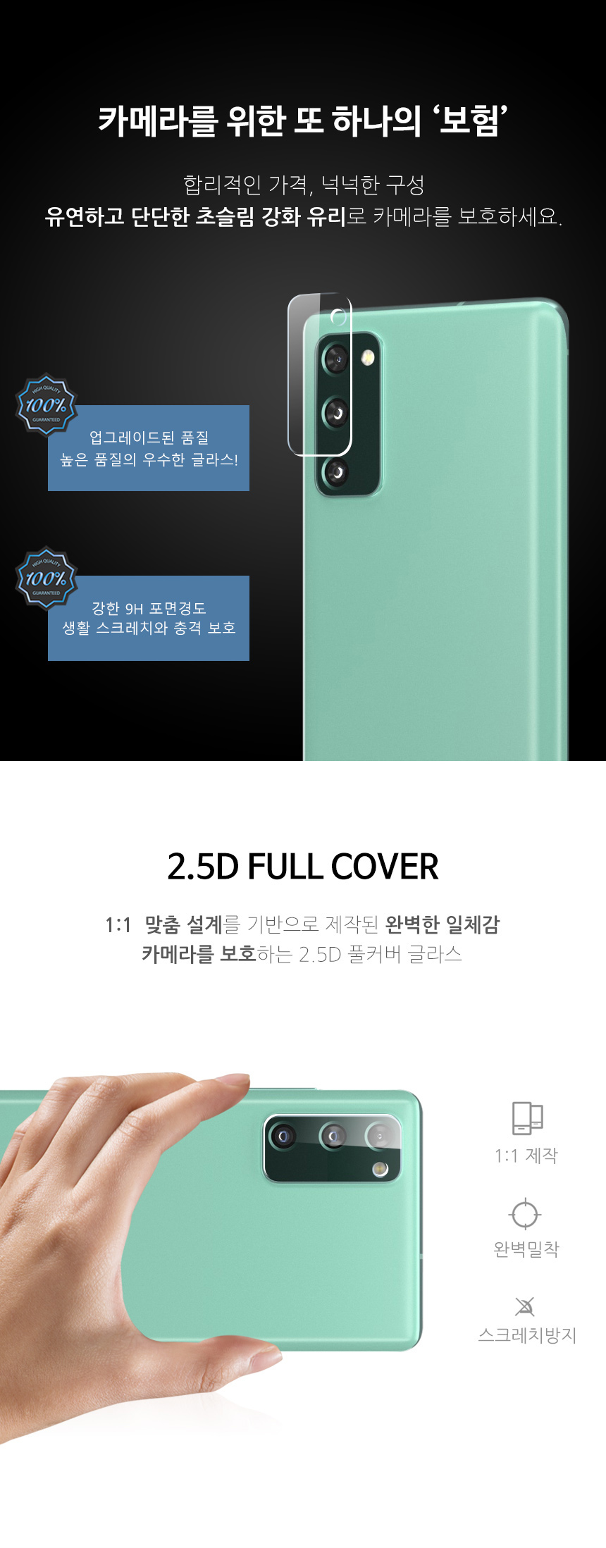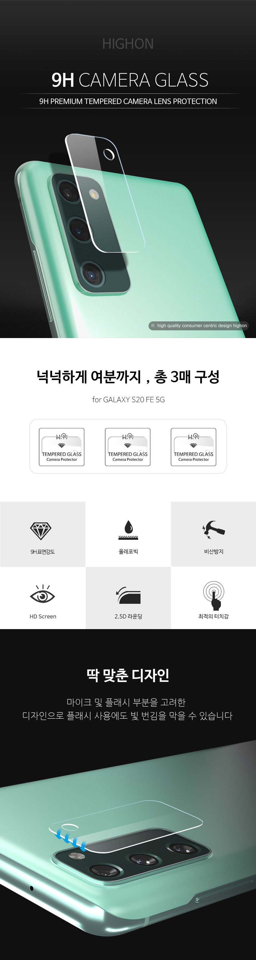 하이온 L글라스 후면 카메라 9H 강화유리 필름 (3매)