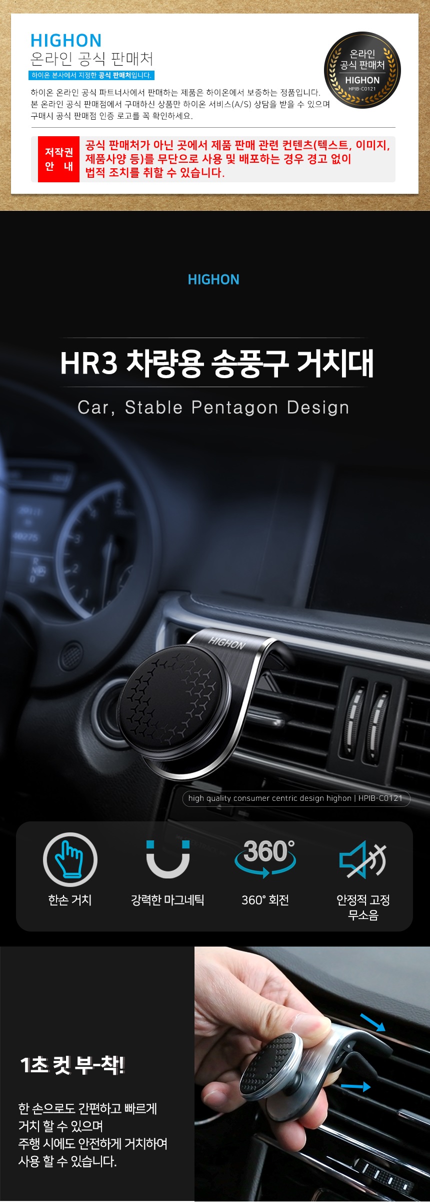 하이온 HR3 차량용 송풍구 거치대
