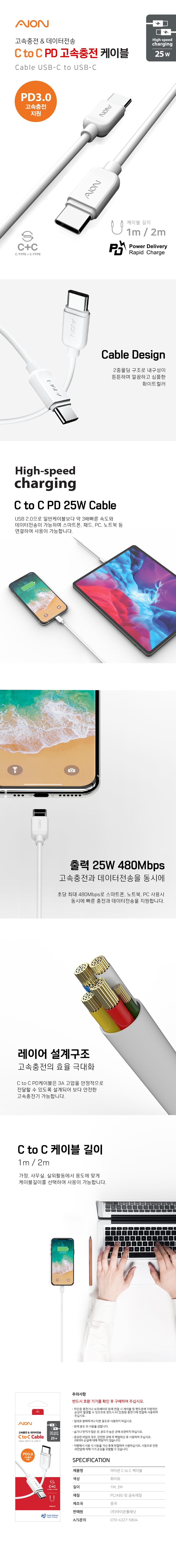 아이온 CtoC PD 25W 고속충전 데이터 케이블 (2M)
