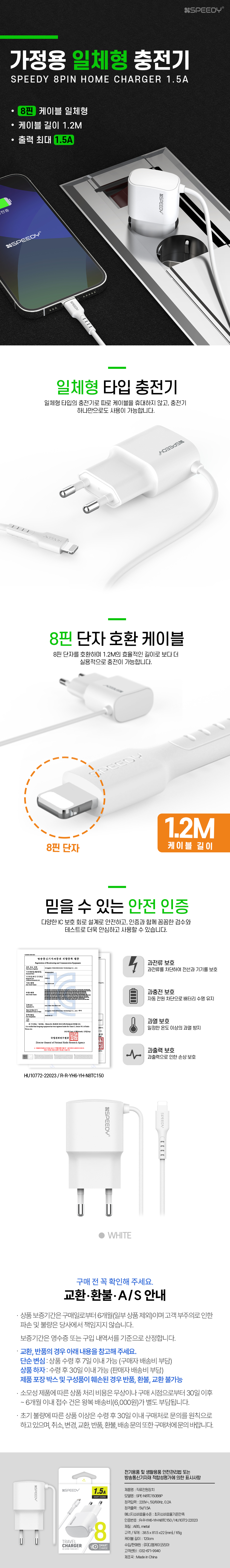 NEW 스피디 8핀 일체형 가정용 충전기 (1.5A)