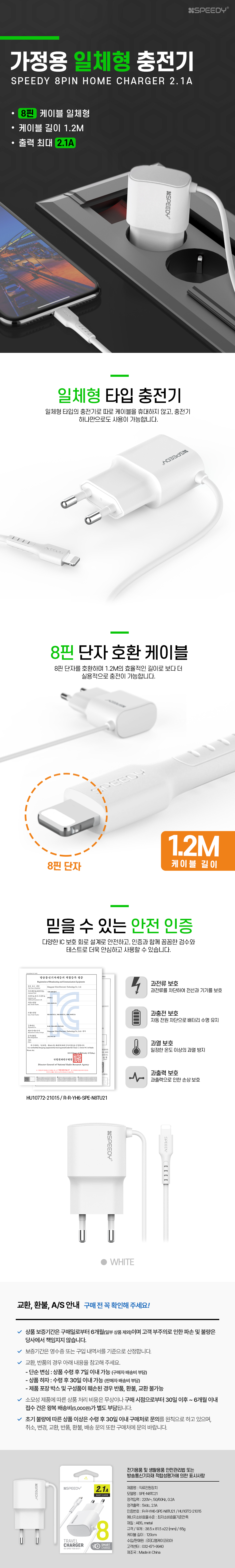 NEW 스피디 8핀 일체형 가정용 충전기 (2.1A)