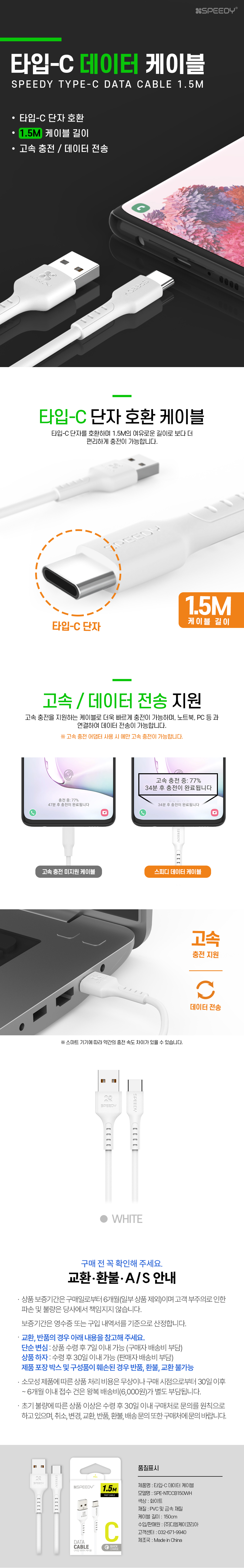 NEW 스피디 C타입 데이터 케이블 (1.5m)