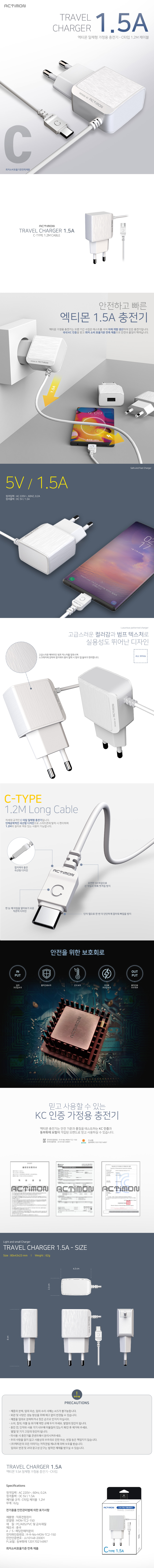 액티몬 NEW C타입 일체형 가정용 충전기 1.5A (MON-TC2-150-CP)