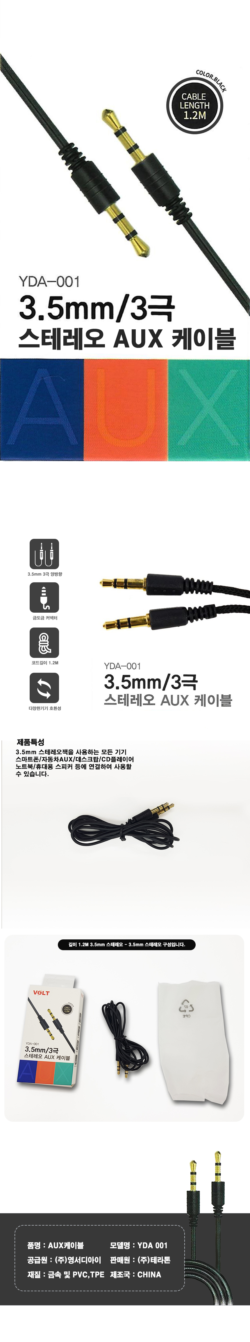 3.5mm 고음질 스테레오 AUX 케이블 (1.2m)