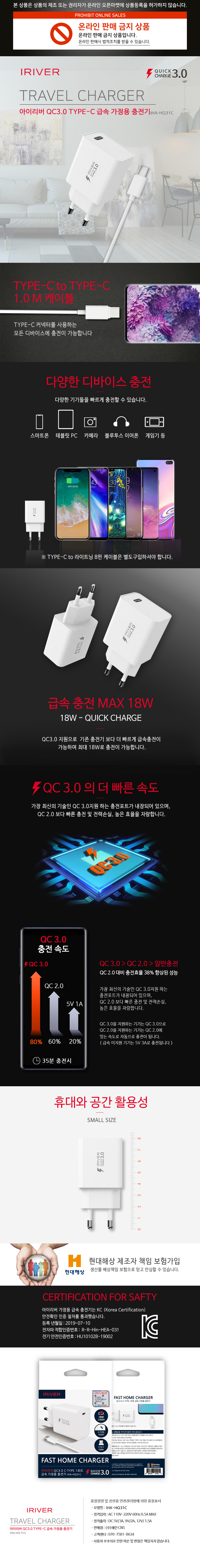 아이리버 QC3.0 CtoC 급속 가정용 충전기 (C타입 포트)