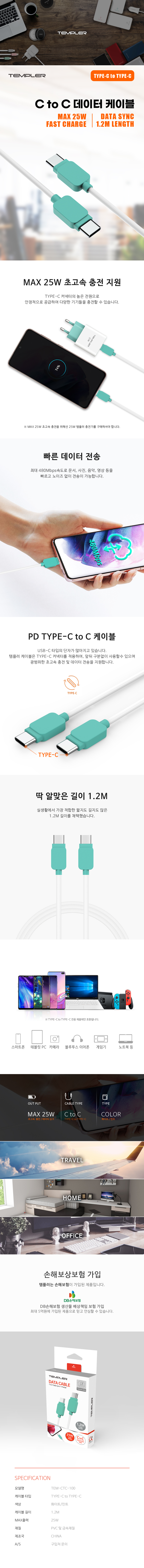 템플러 CtoC PD 25W 초고속 충전 데이터 케이블 (1.2M)