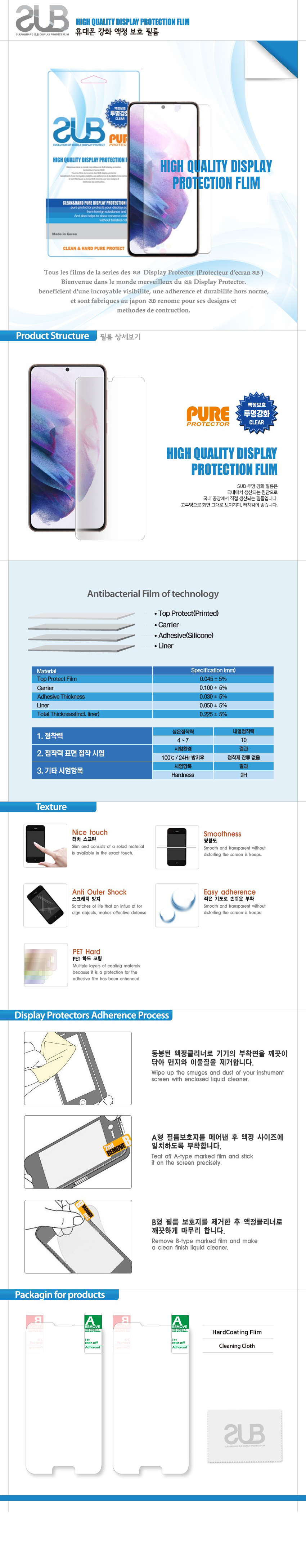 서브 크리스탈 강화 액정보호필름 (3매)