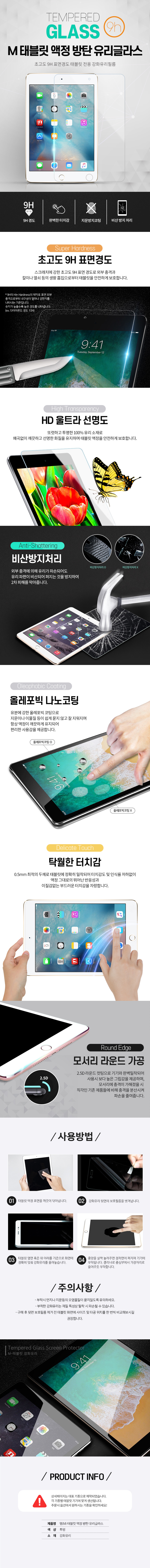 엠(M) 태블릿 액정 방탄 유리글라스 (1매)