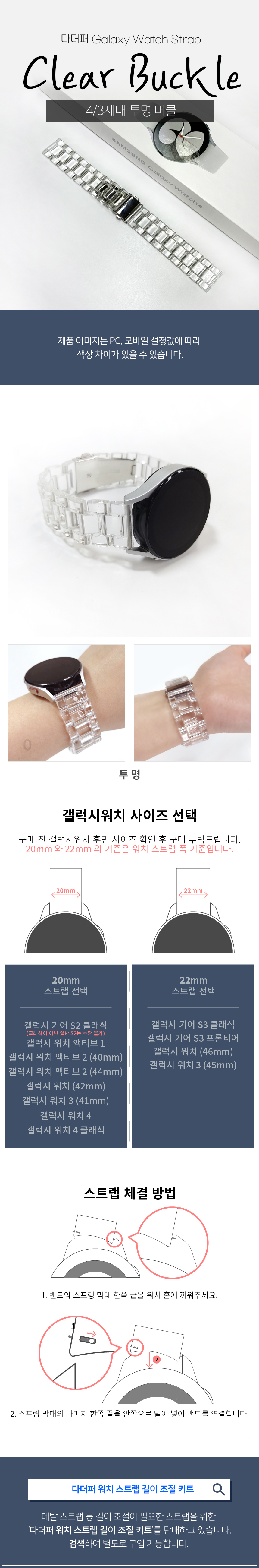 다더퍼 갤럭시 워치 스트랩 4/3세대 투명 버클 22mm (2112)