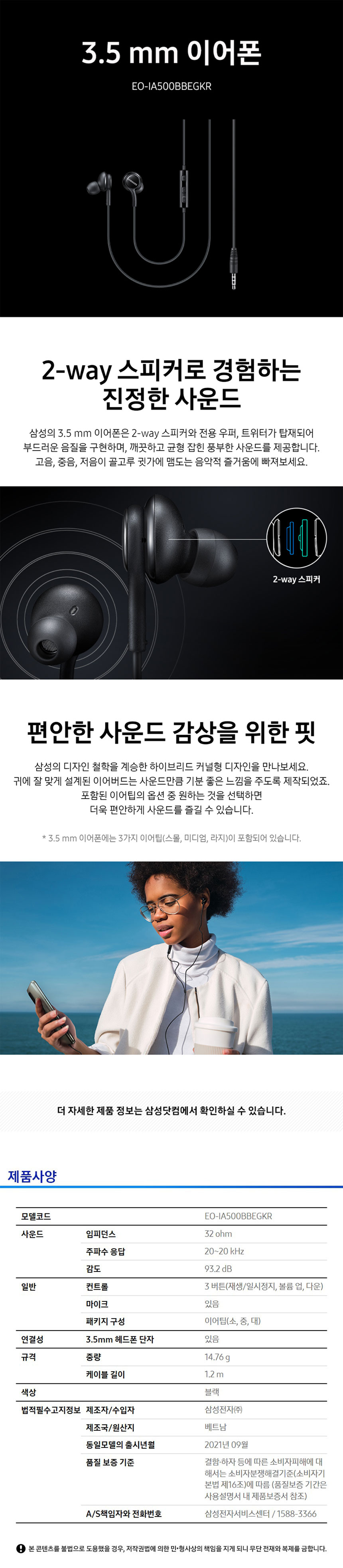 [삼성정품] 3.5mm 스테레오 이어폰 (EO-IA500)