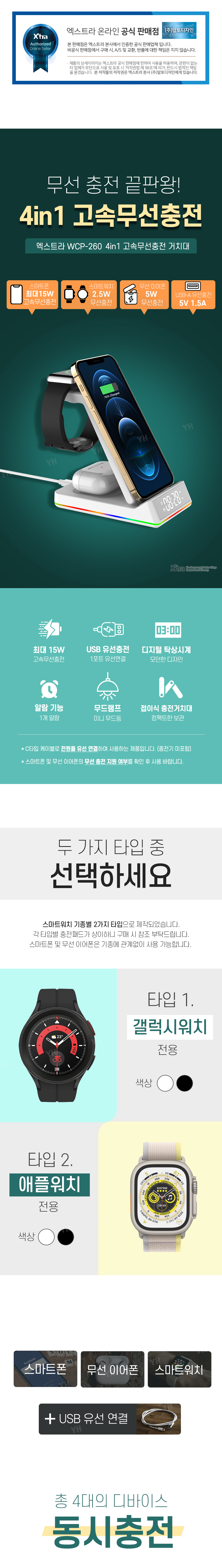 엑스트라 WCP-260 4in1 고속 무선 충전 거치대 (애플워치 전용)