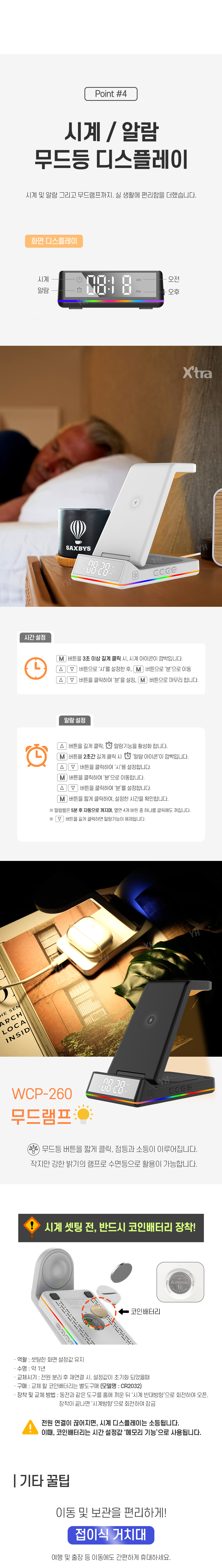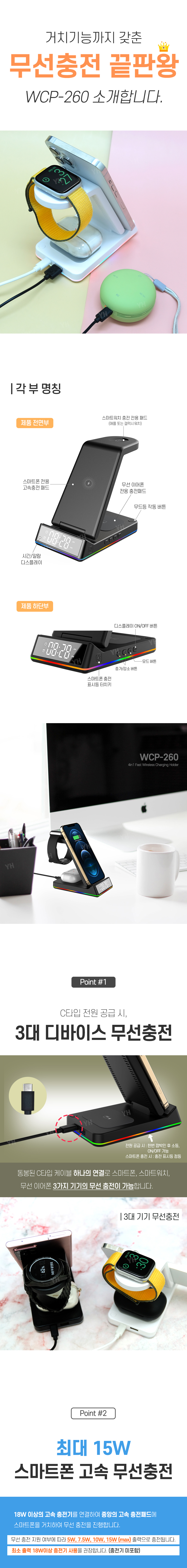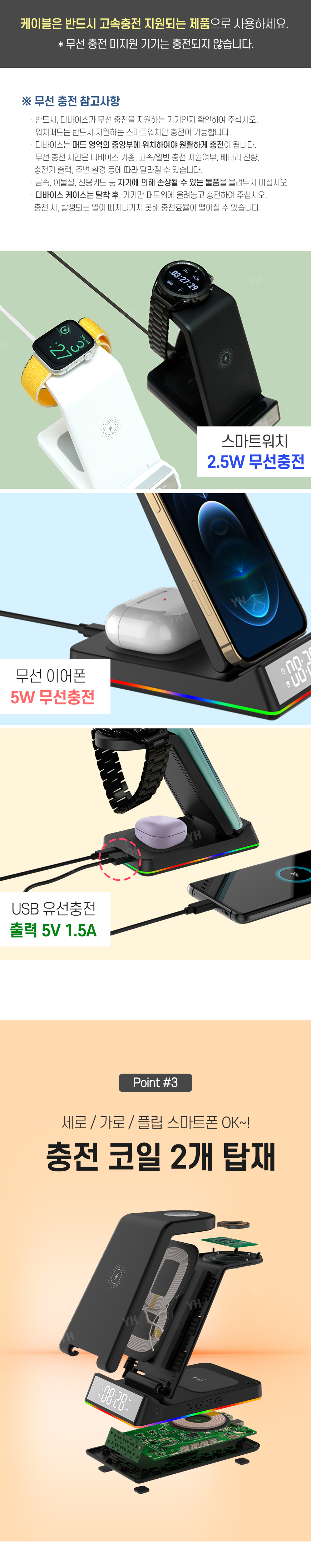 ※ (스마트폰+애플워치+블루투스) 충전 지원+시계,알람,무드등 디스플레이,유선충전