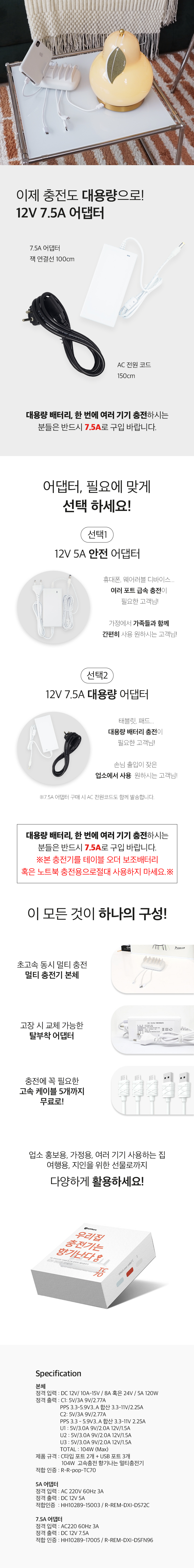 팝폰 TC70 PD/PPS 5포트 초고속 디퓨져 멀티 충전기 (7.5A)