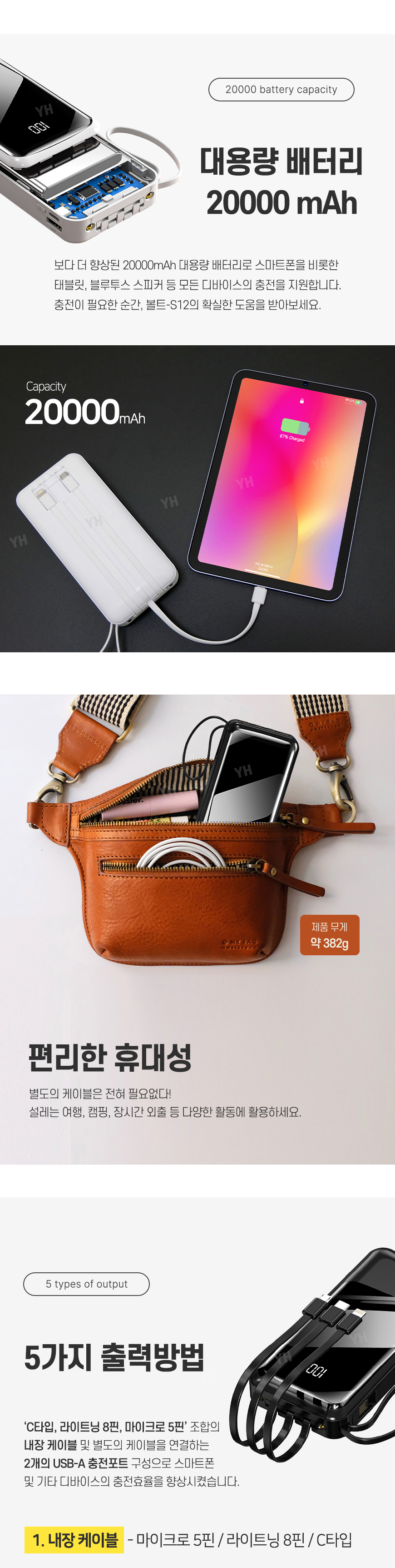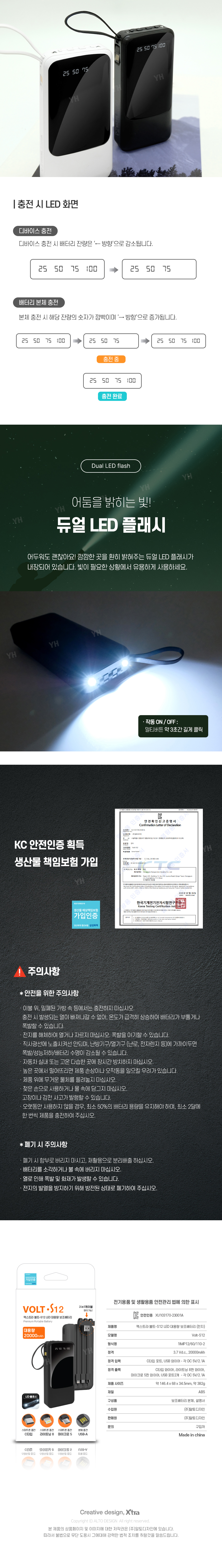 엑스트라 볼트-S12 LED 대용량 보조배터리 20,000mAh
