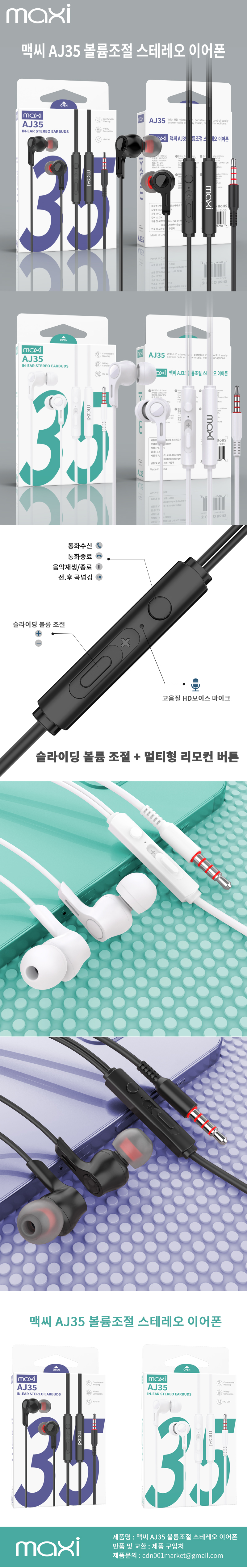 맥씨 AJ35 볼륨조절 스테레오 이어폰