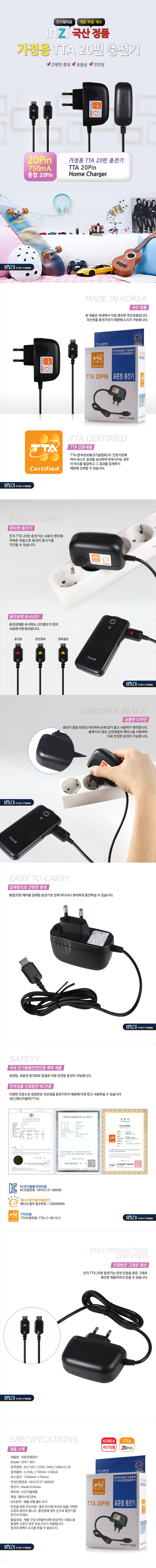 인지 통합 20핀 일체형 가정용 충전기 (750mA)