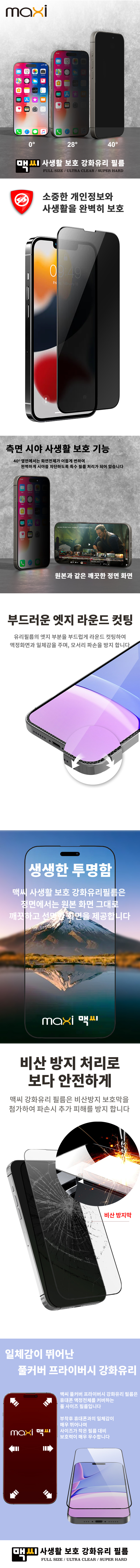 맥씨 프라이버시 사생활보호 강화유리 액정보호필름 (1매)
