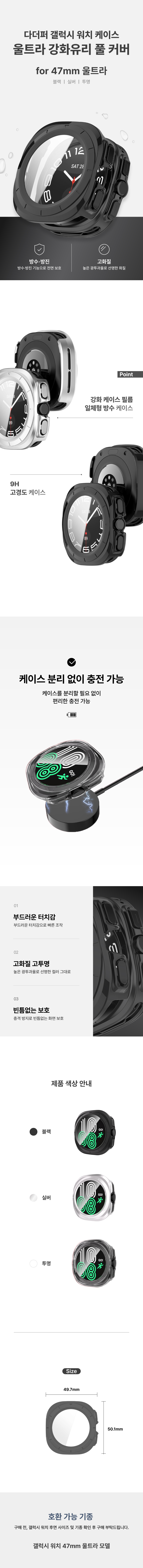 다더퍼 갤럭시 워치7 울트라 강화유리 풀커버 케이스 47mm (4913)