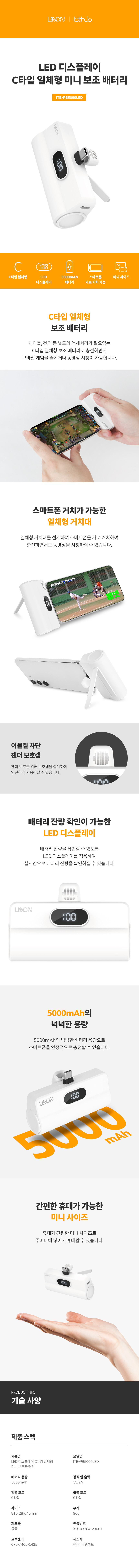 LAAON LED 디스플레이 C타입 일체형 미니 보조배터리 5,000mAh (ITB-PB5000LED)