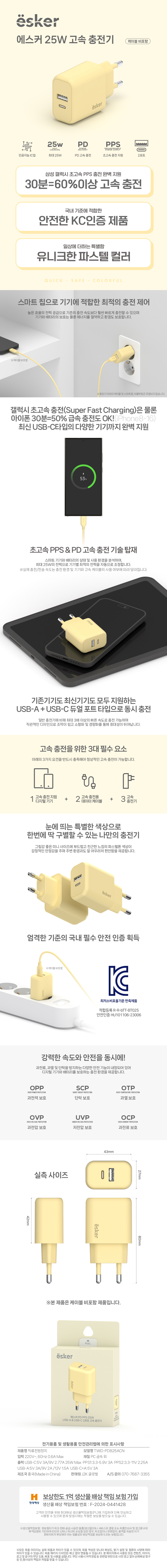 에스커 GaN 지원 PPS PD 25W 초고속 2포트 가정용 충전기 (USB+C 포트)