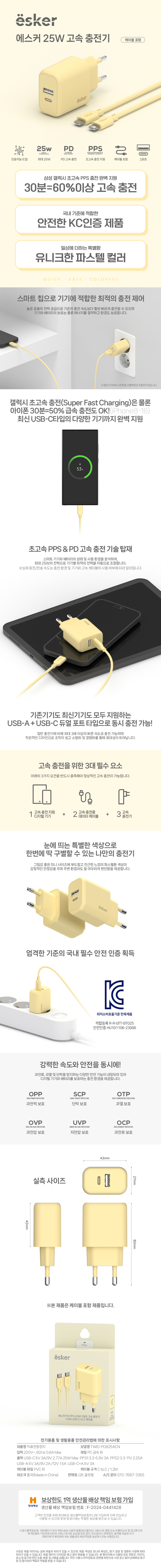 에스커 CtoC GaN 지원 PPS PD 25W 초고속 2포트 가정용 충전기 (USB+C 포트)