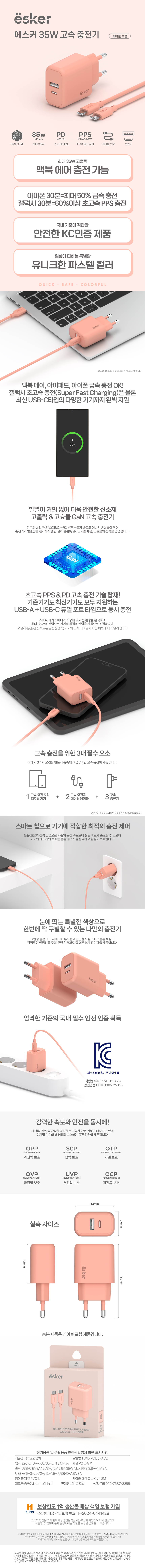 에스커 CtoC GaN 지원 PPS PD 35W 초고속 2포트 가정용 충전기 (USB+C 포트)