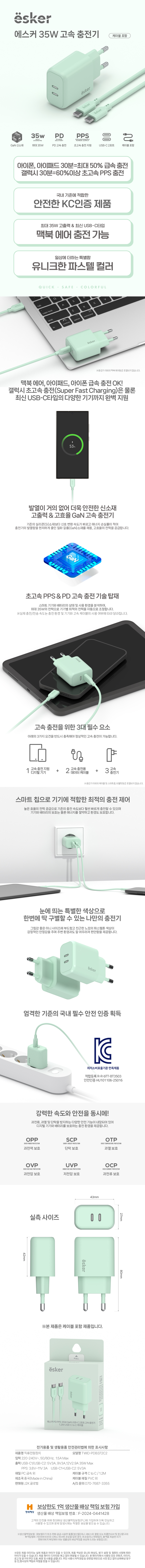 에스커 CtoC GaN 지원 PPS PD 35W 초고속 2포트 가정용 충전기 (C+C 포트)