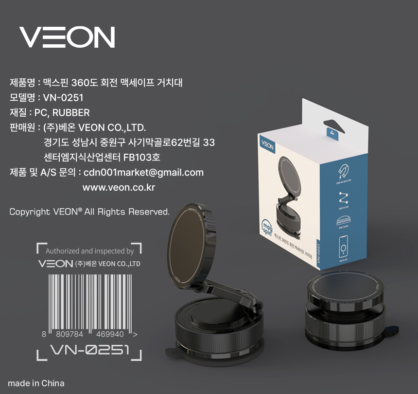 베온 맥스핀 맥세이프 360도 회전 진공 흡착식 차량용 거치대