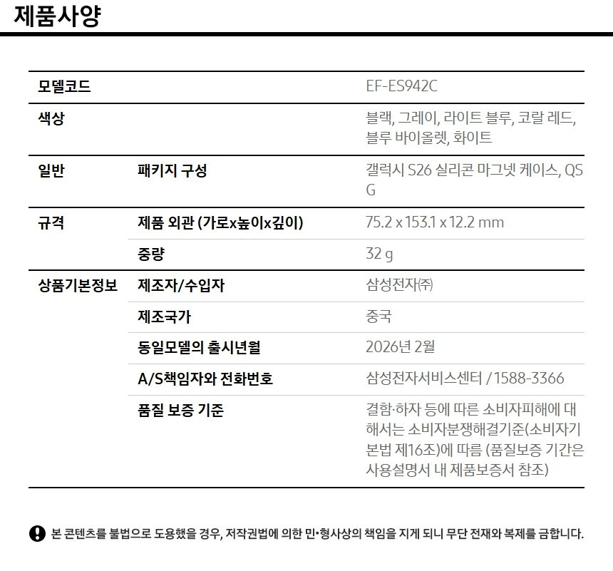 [삼성정품] S26 실리콘 마그넷 케이스
